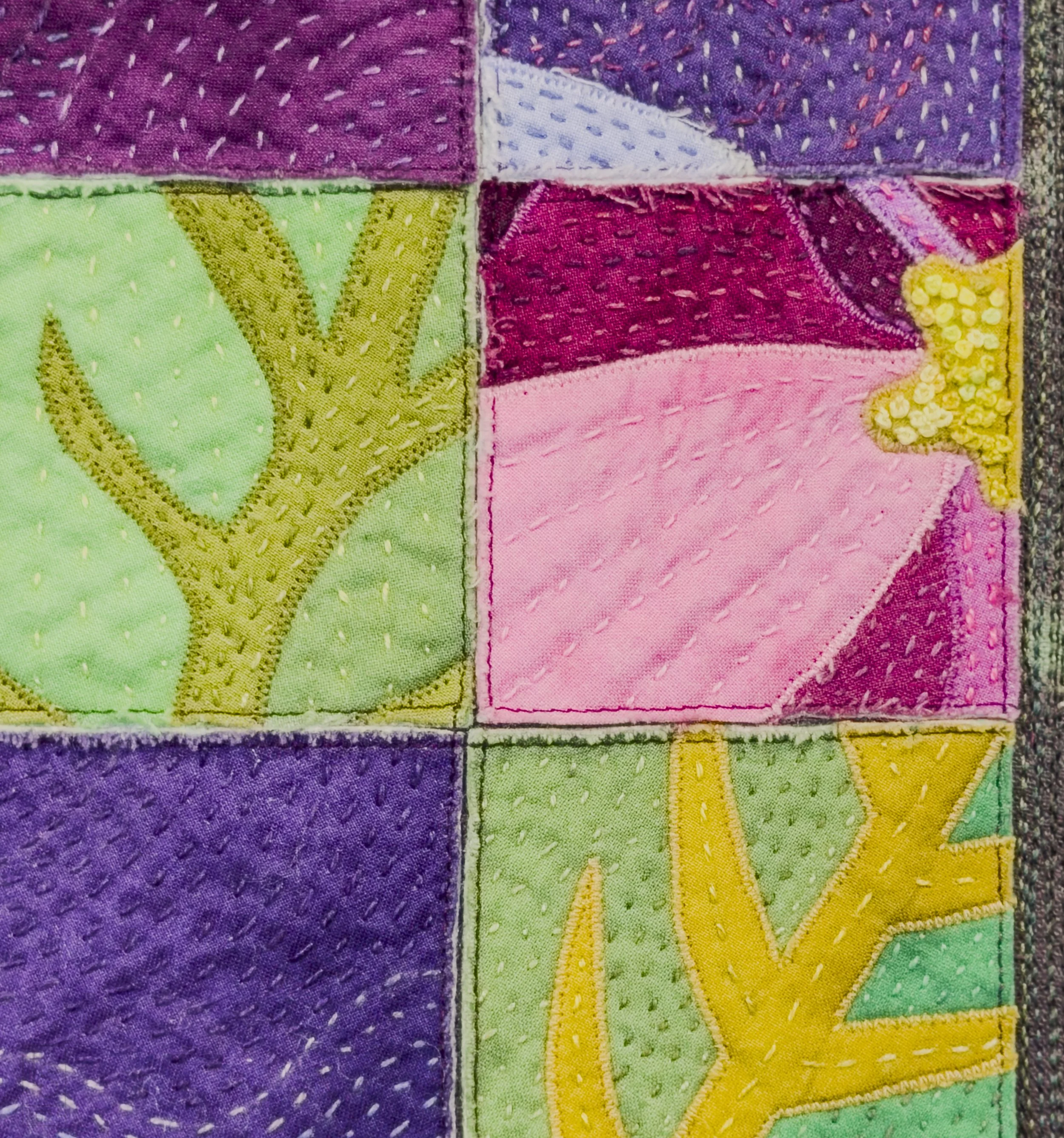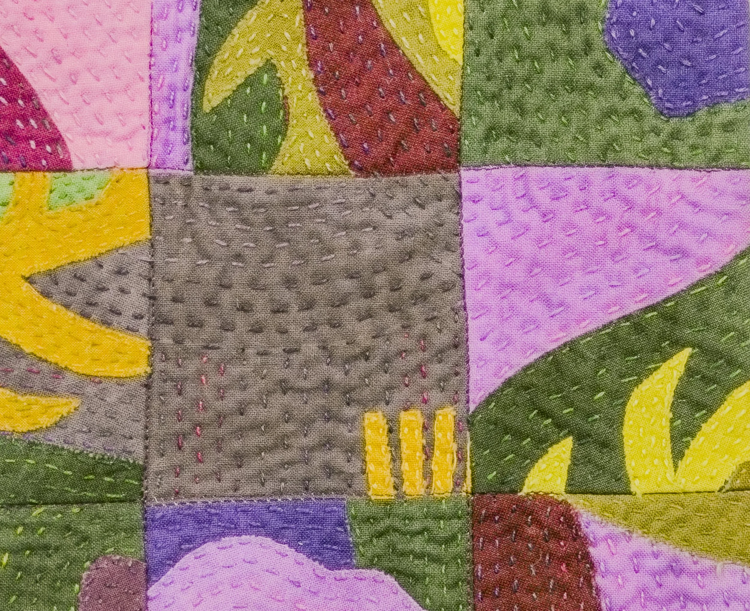 Boardwalk 1 (detail)• 22 x 23" • cottons with wool batting • 2025 • $485